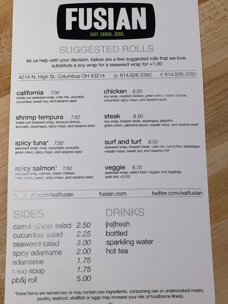 FUSIAN is a modern restaurant in Columbus, OH that offers a wide range of sushi rolls, bowls, and salads. With options like the california insideout roll and the mango ahi tuna bowl, FUSIAN caters to both sushi lovers and those looking for a healthy meal. The restaurant also offers vegan and vegetarian options, making it a great choice for diverse dietary preferences. The reviews from customers highlight the freshness of the ingredients and the delicious flavors of the dishes. Whether you're looking for a quick bite for lunch or a satisfying dinner, FUSIAN has something for everyone. Don't miss out on their unique offerings like the Bao Bun with Marinated Pork for a flavorful experience. Experience the casual yet classy atmosphere and excellent service at FUSIAN for a memorable dining experience.